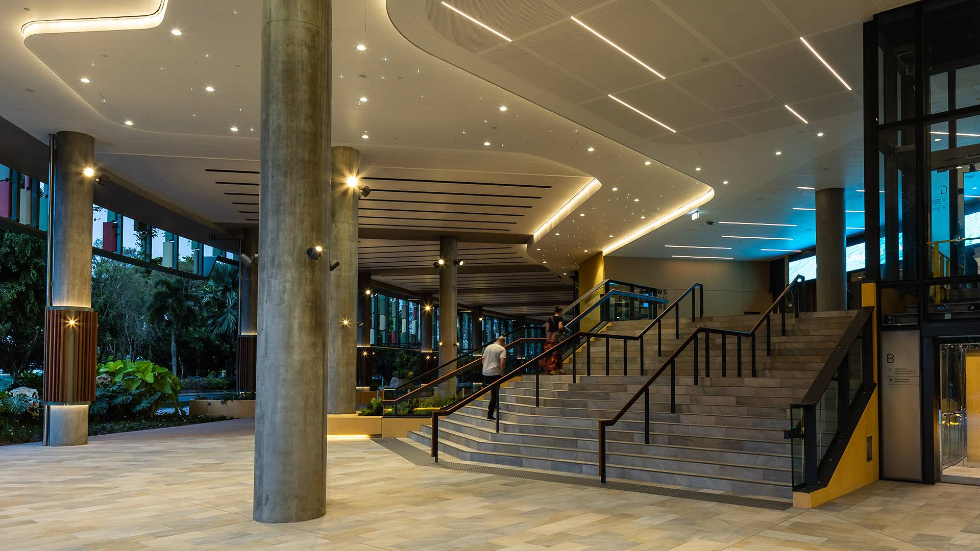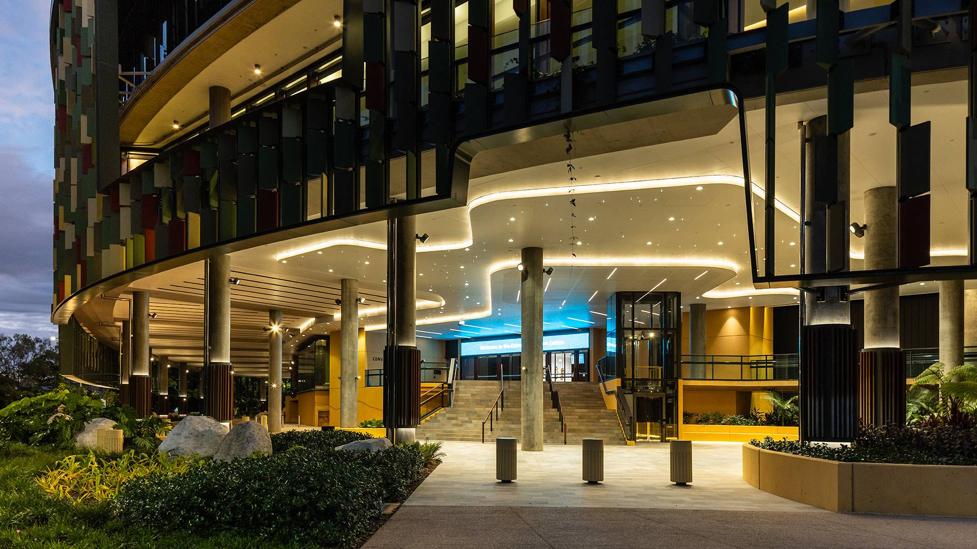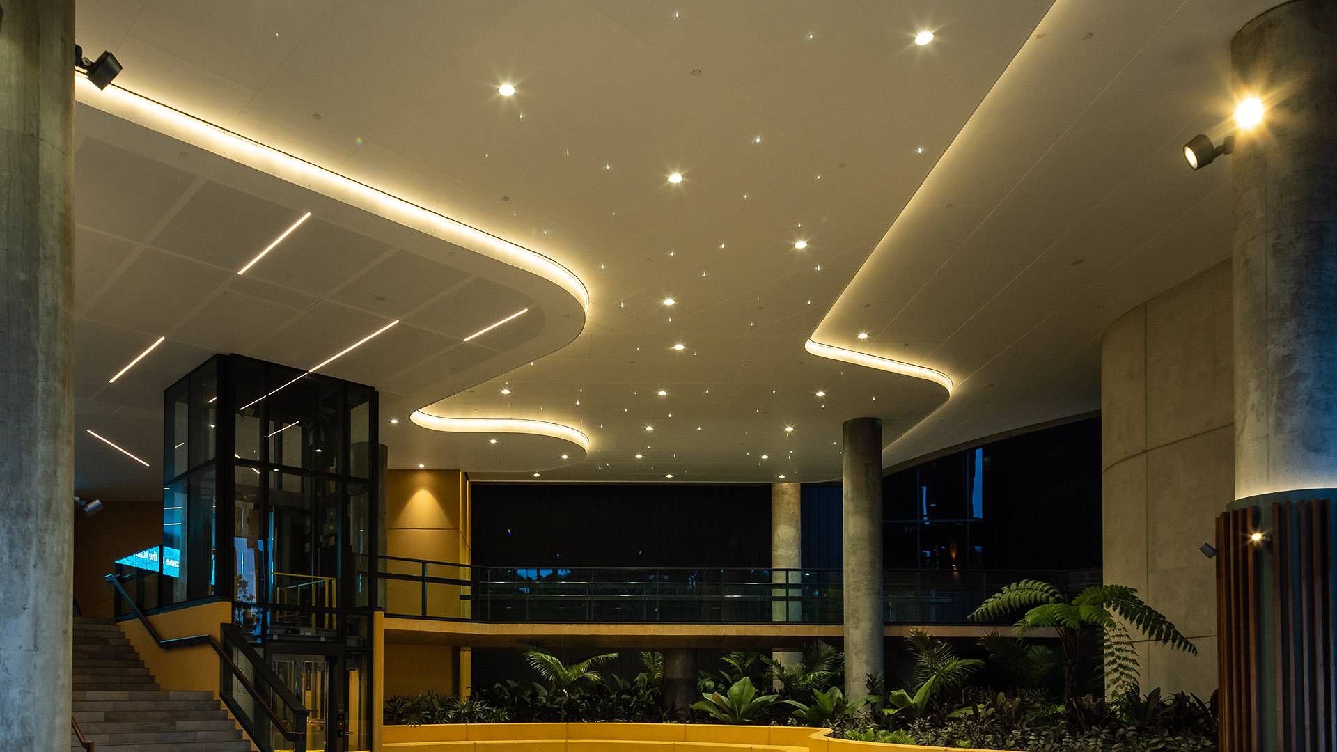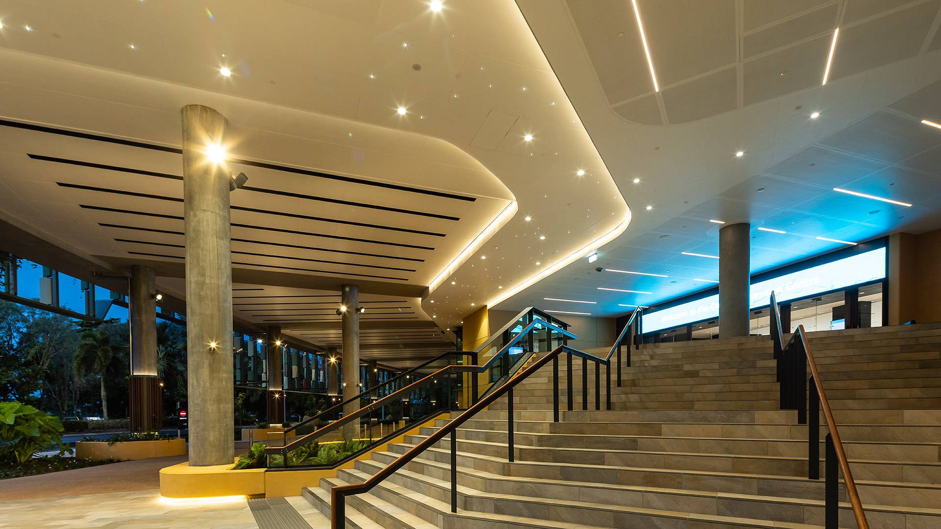Coolon's Aduro CL gracefully decorates the exquisite ceilings of the Cairns Convention Centre, grazing the features whilst illuminating the spaces below.