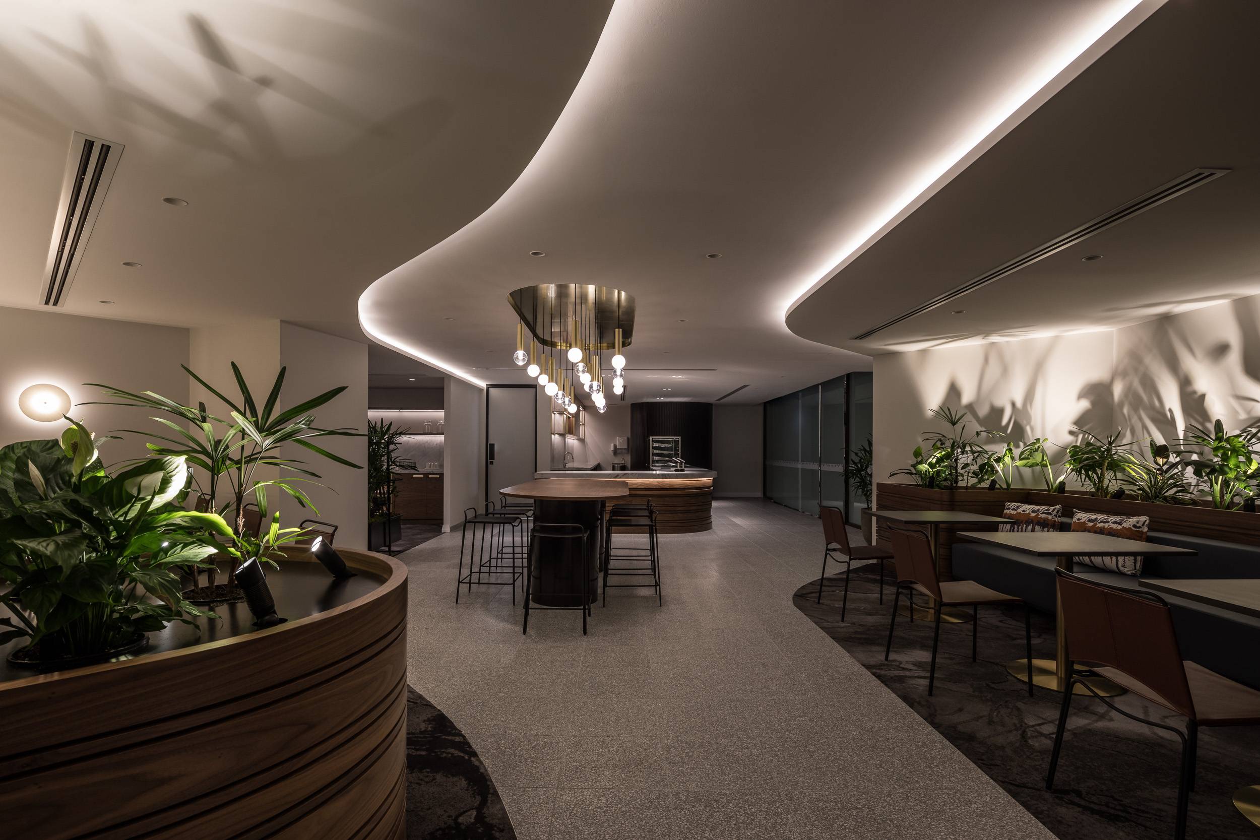 This winding trail of gentle light creates a sophisticatedly luxurious ambience around the Gateway Business Lounge. Delicate yet powerful, the lighting complements the unique architecture of the space, enhancing the dramatic effect of the feature ceiling.