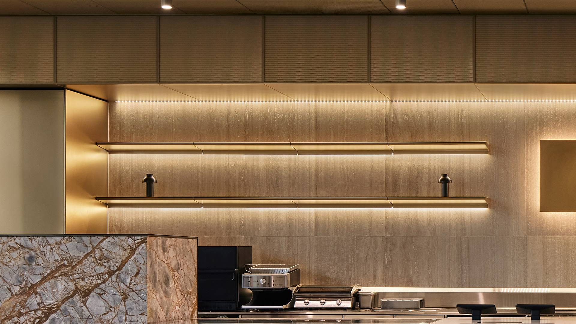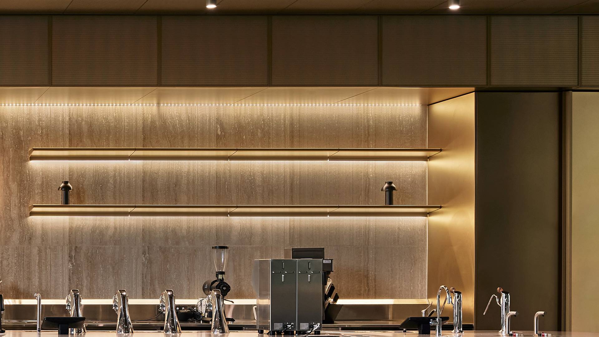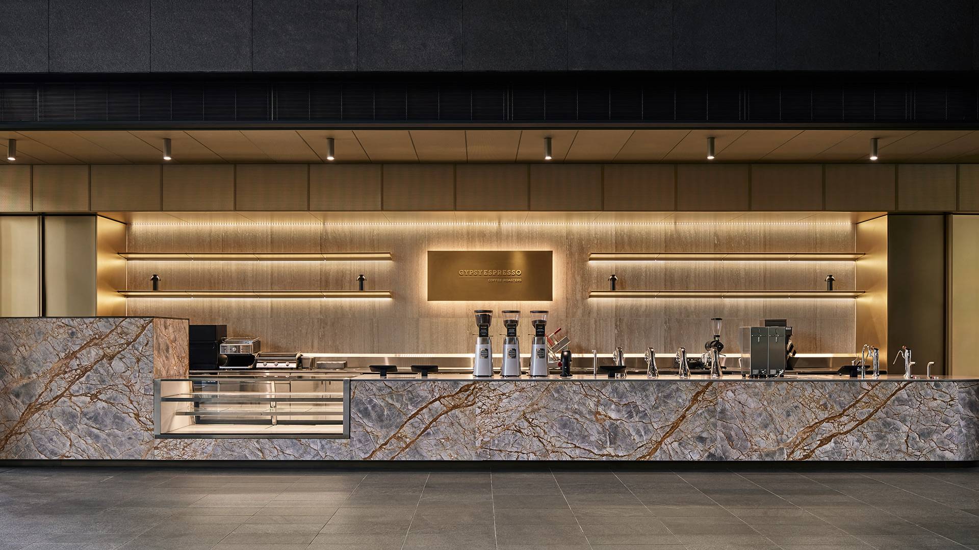 Lobby Espresso Bar by Gypsy illuminated by Coolon linear luminaires.