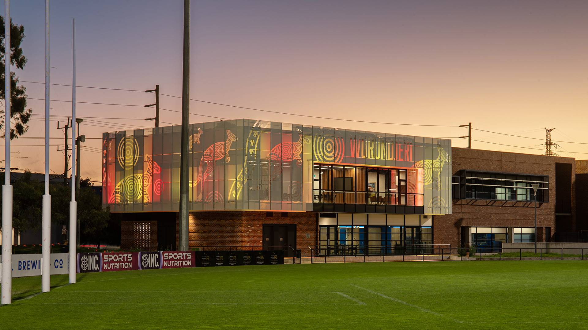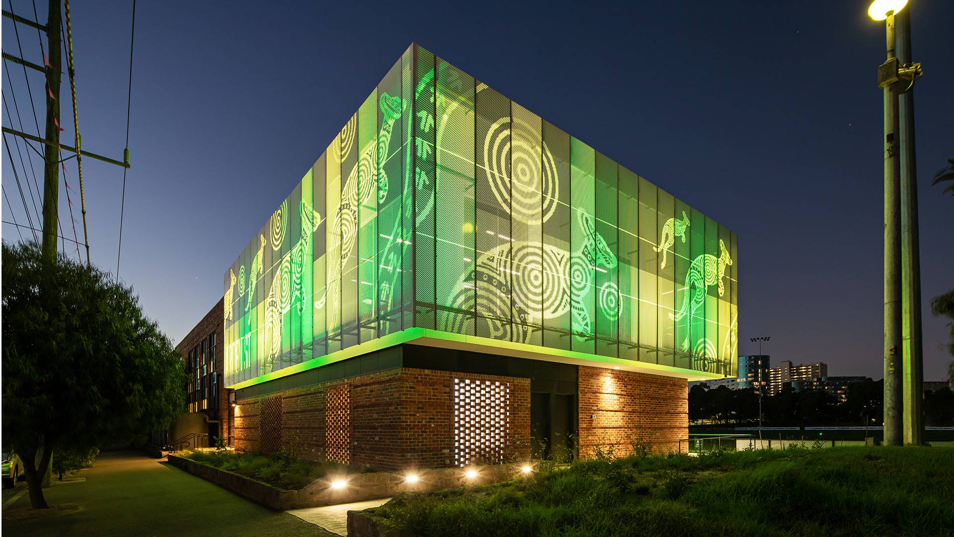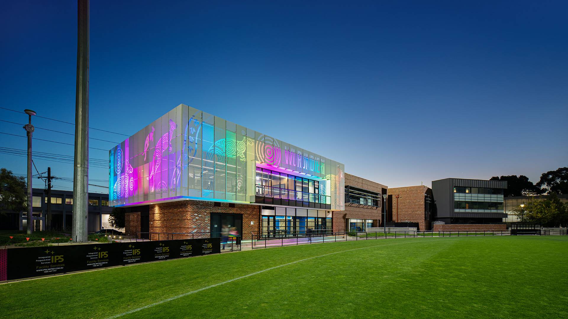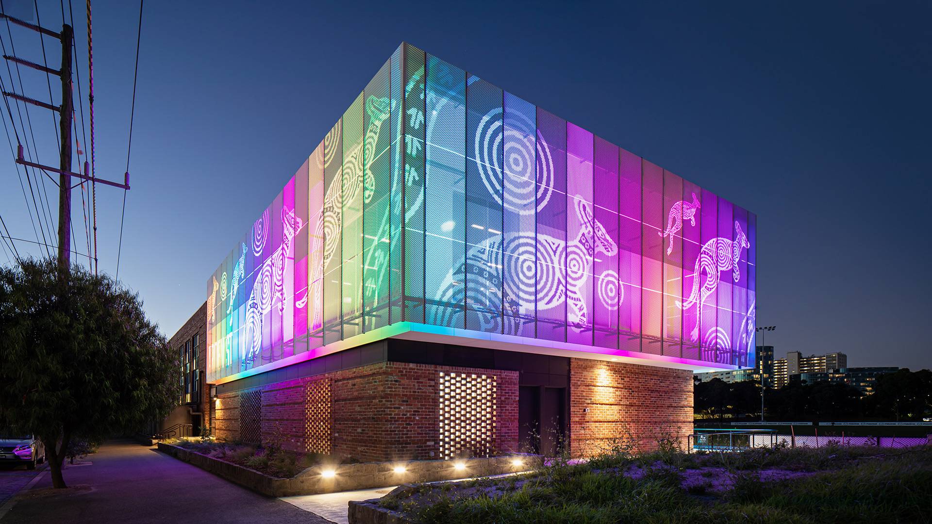The North Melbourne Football Club’s headquarters received a rejuvenating upgrade, including the use of Aria RGBWs installed on the façade of the new East End extension. Back-lighting the perforated sheet metal façade, the colour-changing floodlight grants the club full creative control, enabling the of use colour and light to visually reinforce the club's connection with First Nations communities, celebrate LGBTIA+ communities, showcase NMFC's traditional Royal Blue and White, and more.