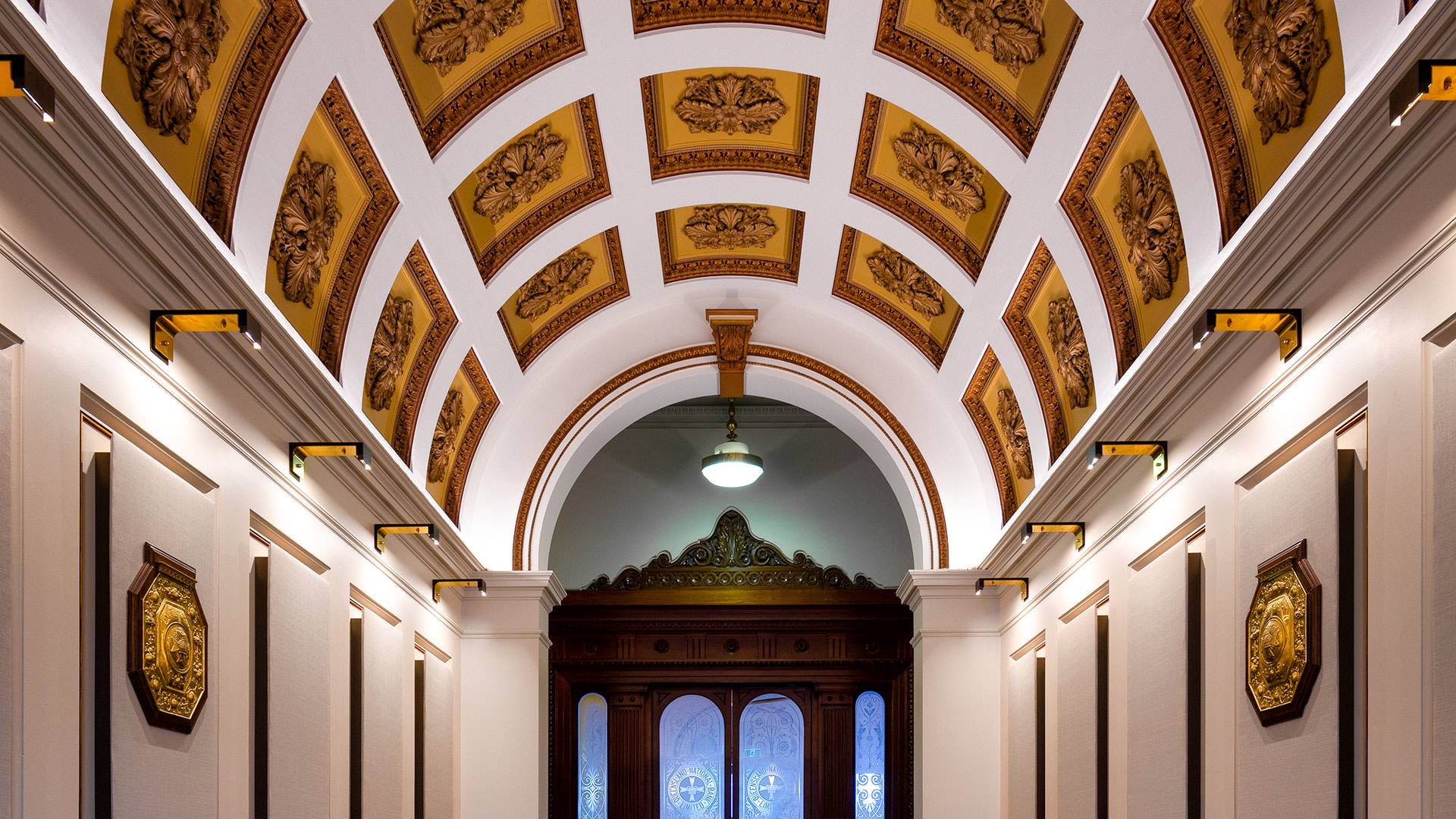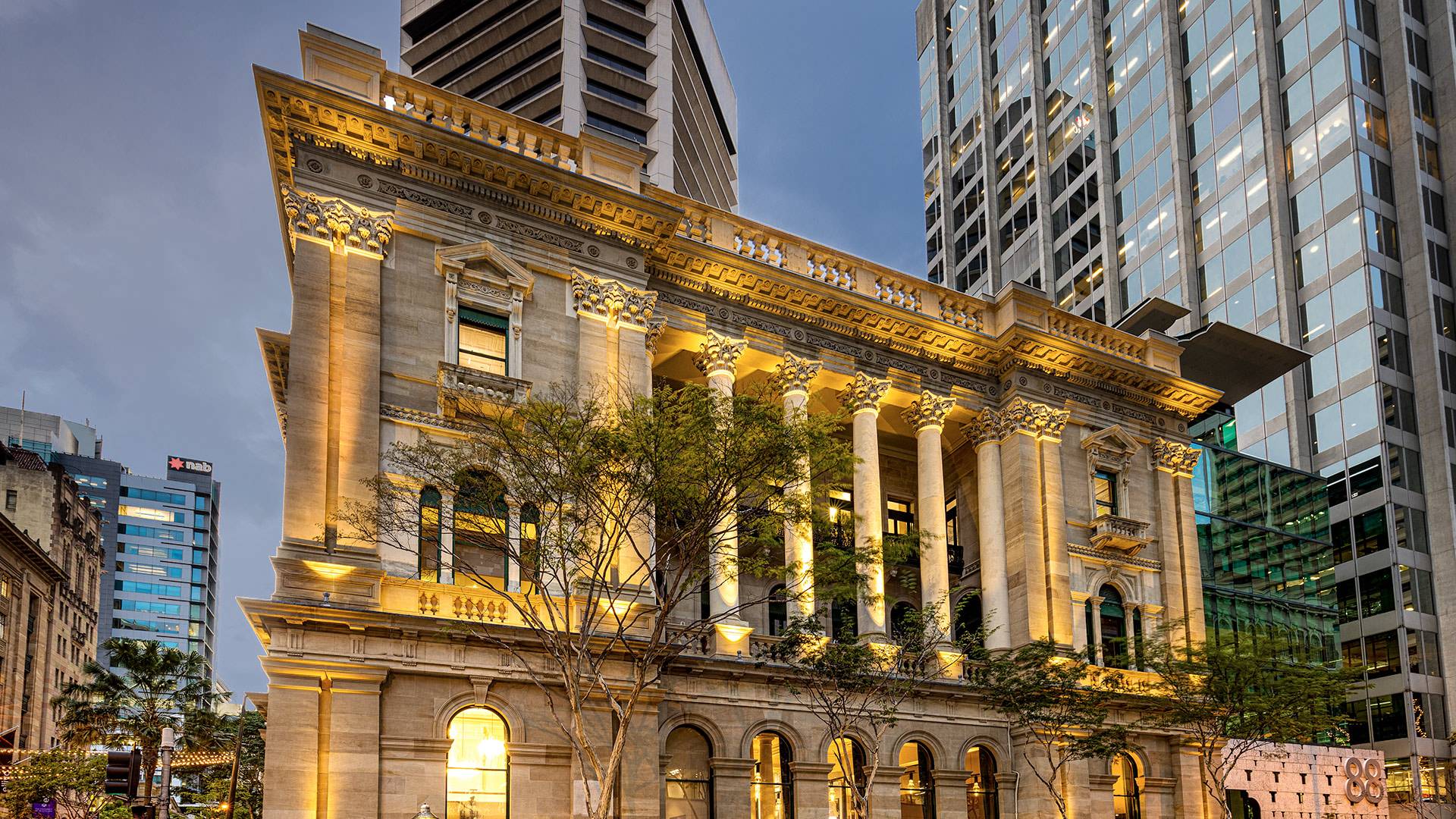 The thoughtfully restored University of Queensland (308 Queens St) is gently illuminated by Coolon Multo IP rigid LED strip.