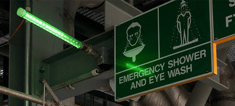 When the eyesight is compromised, green is the last colour a person is able to differentiate, leading them to the life-saving eyewash station.