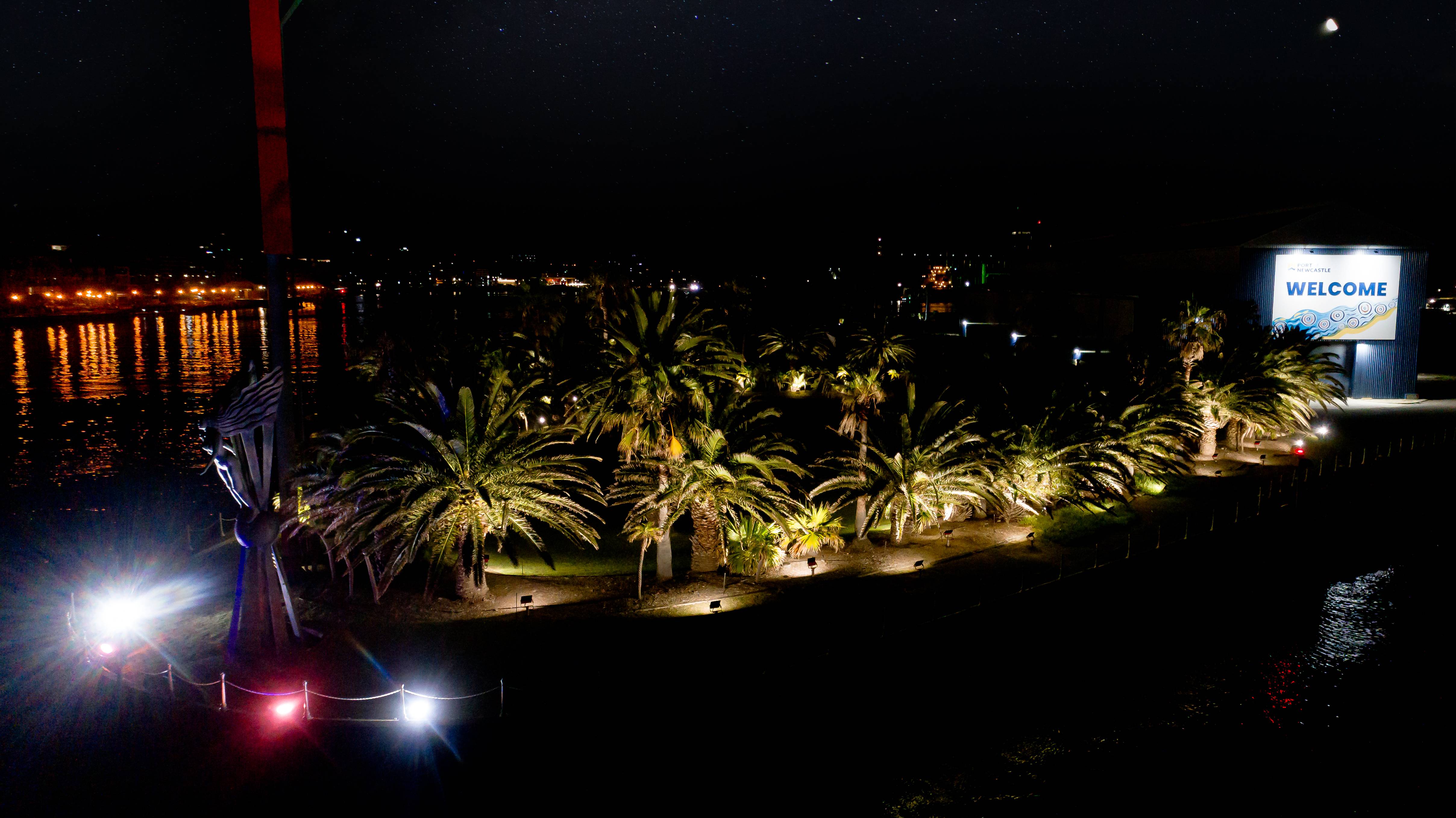 Port lighting on an iron ore mine carried out in turtle-friendly amber to protect local wildlife.